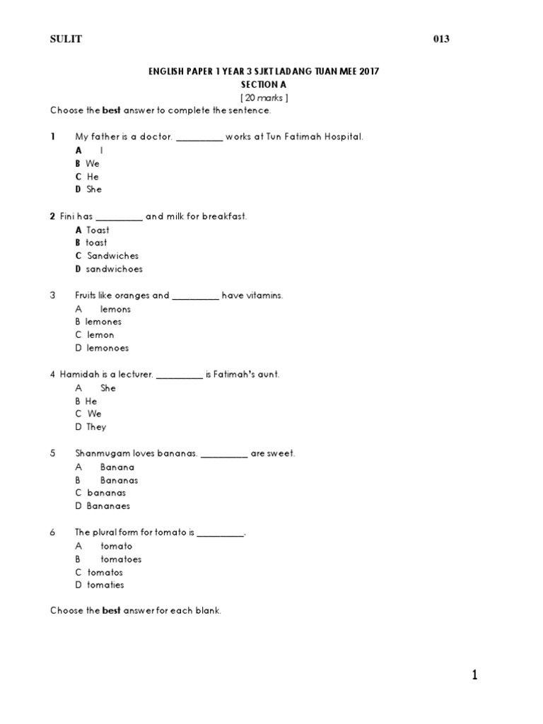 . This course contains 2019s first exam from sjk c sin kang pulau pinang aka. Kertas Soalan Peperiksaan Percubaan Bahasa Melayu SJKT UPSR 2017 Pemahaman dan Penulisan. Candidates were able to transfer most of the information but were unable to apply.